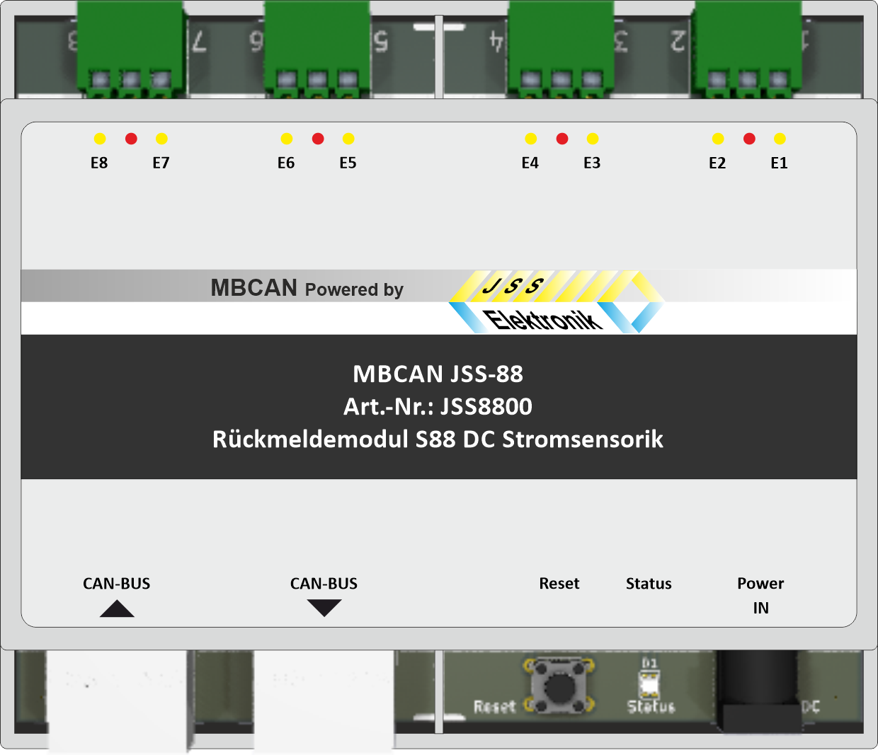 Dieses Modul stellt 8 Rückmeldekontakte für Stromsensorik bereit. Der Einsatz in digitalen 2-Leiter-DC-Anlagen von Trix® ist damit genauso möglich, wie die klassische Anwendung im Märklin® 3-Leiter-AC-System. Alle Kontakte sind untereinander galvanisch verbunden, zum MBCAN aber galvanisch entkoppelt. Die Bereitstellung des Rückmeldepotenzials wird über die Gleisversorgung (Braun) sichergestellt. Je Eingang kann eine Haltezeit für das Ereignis als Filter programmiert werden. Der Diodentrick zur Sicherung der Stromversorgung von Triebfahrzeugen in der AC-Anwendung mit Massekontakt ist integriert.