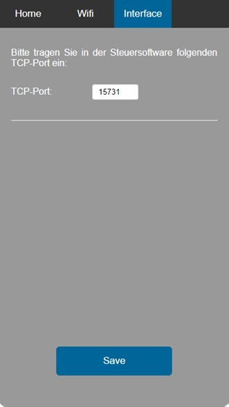 ! Ein ändern des TCP-Port im Interface ohne die Einstellung in der Steuersoftware ebenfalls zu tätigen, führt dazu das die Steuersoftware keine Verbindung mehr zum Interface aufbauen kann.