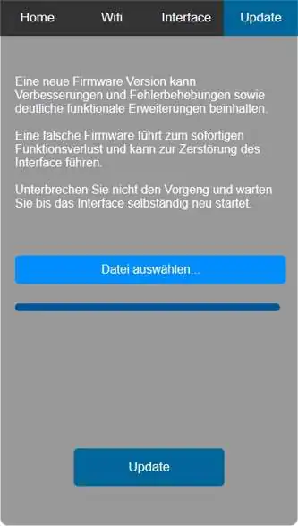 Nach der Installation einer neuen Firmware kann es sein das das Interface wieder neu eingestellt werden muss. Gehen Sie dabei wie bei einer Neuinstallation vor. (siehe Punkt 4)