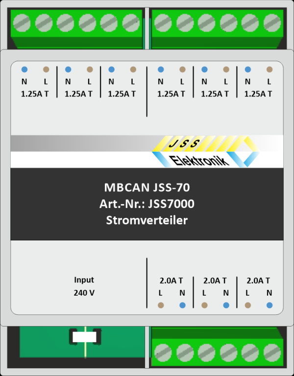 Jeder Ausgang ist intern durch eine Glassicherung abgesichert, deren Nennstrom auf dem Modul eindeutig angegeben ist.