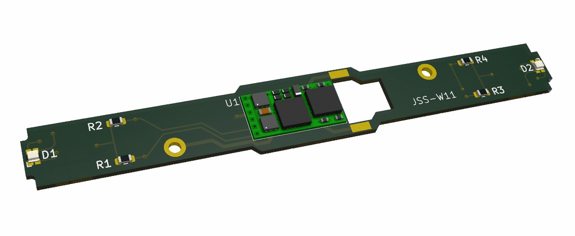- Platzoptimierung für Spur Z: Aufgrund der extrem kompakten Bauweise der Spur Z Lokomotiven ist die Platine besonders flach und passgenau konstruiert. Sie berücksichtigt vorhandene Befestigungspunkte und Aussparungen im Lokgehäuse.
